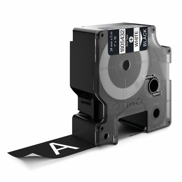 Dymo originální páska do tiskárny štítků, Dymo, 12267, 1805432, bílý tisk/černý podklad, 5.5m, 24mm, RHINO vinylová profi D1