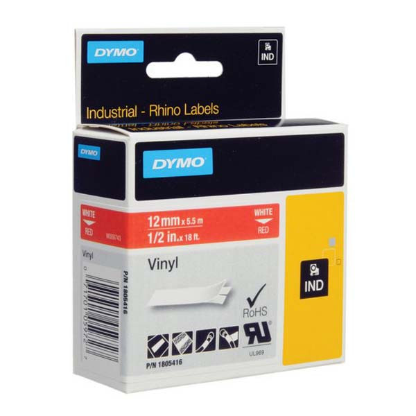 Dymo originální páska do tiskárny štítků, Dymo, 1805416, bílý tisk/červený podklad, 5.5m, 12mm, RHINO vinylová profi D1