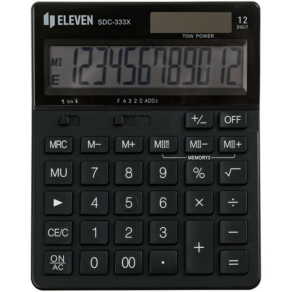 Kalkulačka Eleven SDC-333X-BKE je praktický a spolehlivý stolní model, který ti usnadní každodenní práci s čísly v kanceláři, při domácím účetnictví i ve škole. Díky přehlednému 12místnému displeji a dobře uspořádaným tlačítkům zvládneš rychlé i složitější výpočty bez zdržování. Tento model zaujme klasickým černým designem a odolnou konstrukcí, která vydrží i časté používání.