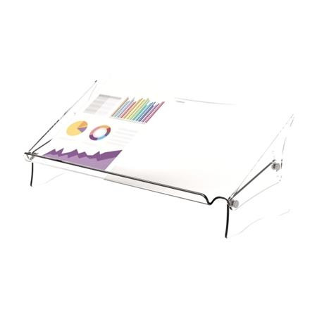 •  série Clarity ™ •  minimalistický čirý design vhodný do jakéhokoliv prostoru •  6 pozic nastavení výšky základny•  výškové nastavení: 160 mm, 175 mm, 190 mm, 205 mm, 220 mm, 235 mm.•  úhel náklonu mezi 17 ° - 39 ° •  určeno pro formát papíru až A3 •  čelní profilovaná hrana zabraňuje sklouznutí těžších dokumentů •  barva čirá •  materiál tvrzený akryl•  nosnost 6 kg •  rozměry (š x v x h) 536 x 160 x 278 mm