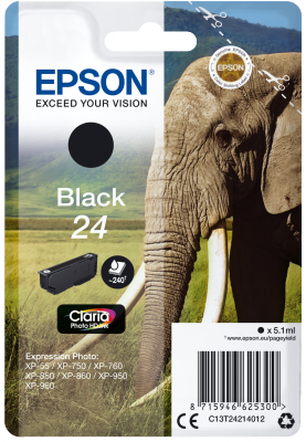Consumables: Ink Cartridges, Claria™ Photo HD Ink, 24, Elephant, Singlepack, 1 x 5.1 ml Black