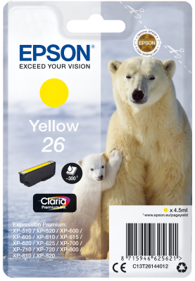 Consumables: Ink Cartridges, Claria™ Premium Ink, 26, Polar bear, Singlepack, 1 x 4.5 ml Yellow