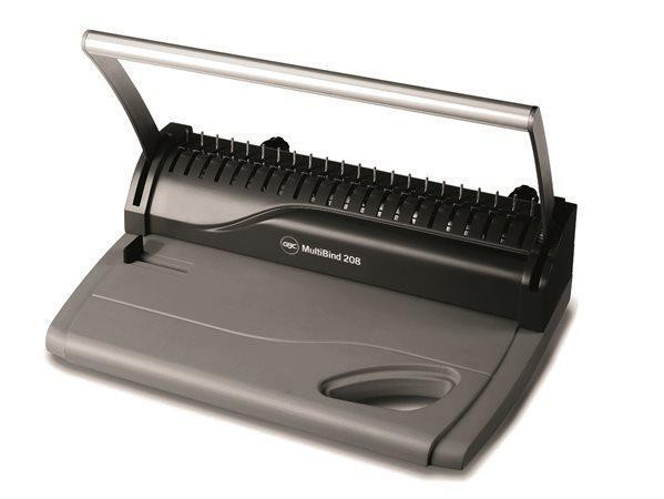 Víceúčelový vazač MultiBind 208 je určen pro manuální děrování a vázání do plastových i kovových hřbetů dokumentů formátu A4 nebo A5.