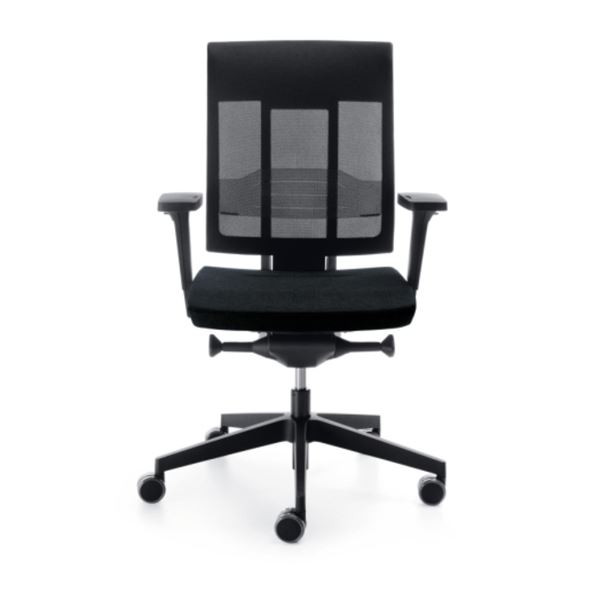• Komfortní a ergonomická kancelářská židle se synchronní mechanikou a opěrákem z měkčené černé síťoviny.
