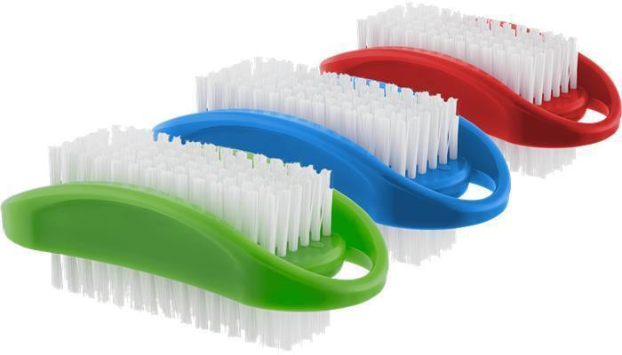 Oboustranný plastový kartáček na nehty s plastovými vlákny.