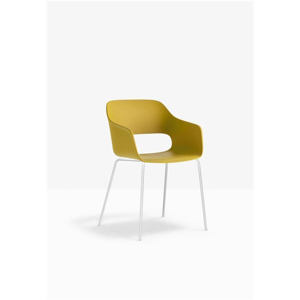 • Skořepina židle je vyrobená z polypropylenu ve žluté barvě, je odolná a snadno omyvatelná