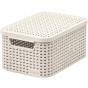 Koš s víkem, krémová, 7 l, umělý ratan, CURVER