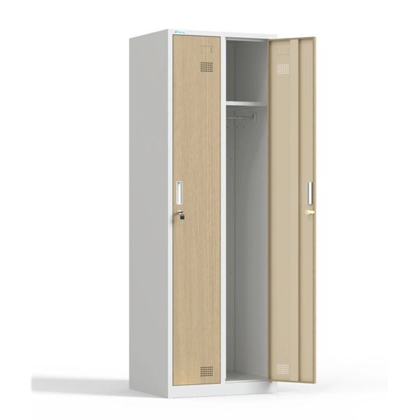• Dvoudveřová šatní skříňka z ocelového plechu tloušťky 0,6 mm