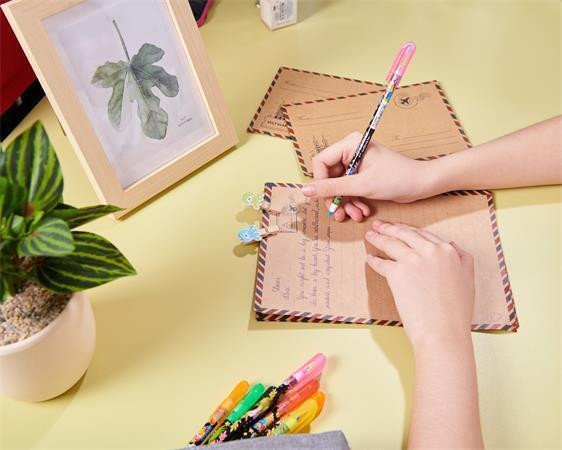 Kuličkové pero s tropickým vzorem. Hladké, snadné psaní.