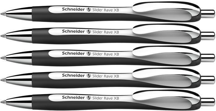 Kuličkové pero "Slider Rave XB", bílo - černá, 0,7 mm, stiskací mechanismus, 5 ks, SCHNEIDER 132549