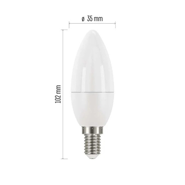 Popis LED žárovka EMOS, E14, 470lm, 4,2W, teplá bíláParametry:patice (uchycení žárovky): E14