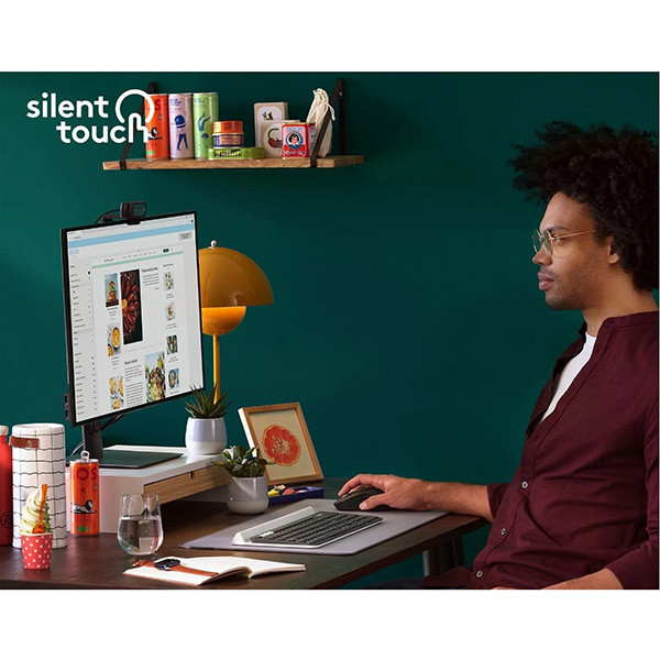 Myš je vybavena spínači hlavních tlačítek s exkluzivní technologií SilentTouch, která snižuje hluk kliknutí o více než 90 % v porovnání s myší Logitech M170, díky čemuž vytváří tišší prostředí pro vaše okolí.