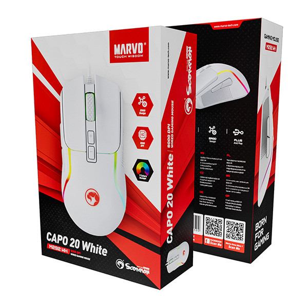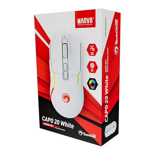 Marvo CAPO 20 Myš drátová, bílá, 8000DPI