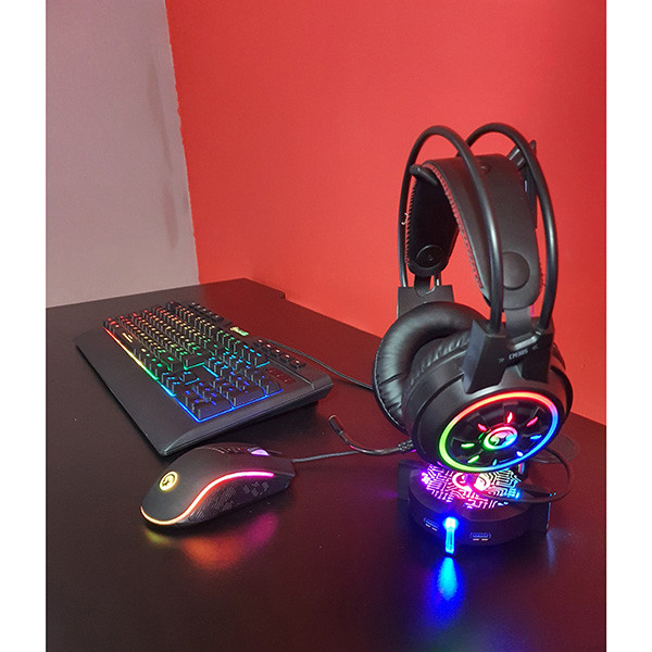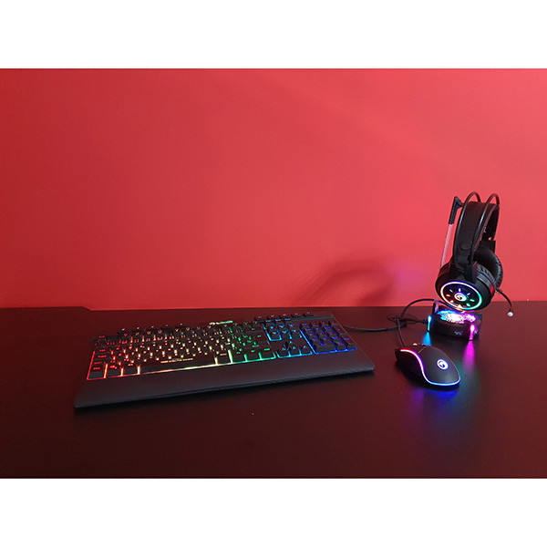 Super kombinace produktů, které potřebuje každý hráč v moderním pojetí s RGB podsvícením. Ovládni každou hru s multimediální klávesnicí s CZ/SK rozložením kláves, na které si můžeš nahrát vlastní mód podsvícení a upravit si intenzitu nebo rychlost efektu podsvícení, myší s vyšším profilem pro podporu dlaně a šesti úrovněmi rozlišení a se 7.1 sluchátky se silnými basy a s mikrofonem.