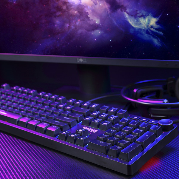 Klávesnice má 104 klávesy + 3 klávesy k ovládání médií a kolečko k regulaci hlasitosti. Díky tomu vám umožní přizpůsobit si audio za chodu a plně se soustředit na hru. Změňte svůj zážitek ze hry jediným stiskem.