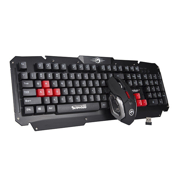 Bezdrátová herní sada Marvo KW509 je tvořená membránovou klávesnicí s CZ/SK rozložením kláves a optickou myší. Sada funguje na principu bezdrátové technologie 2.4 GHz a s počítačem komunikuje prostřednictvím USB 2.0 přijímače. Pracovní vzdálenost sady je do 10 metrů. Klávesnice obsahuje multimediální klávesy, které se spouští přes funkční klávesu FN. Myš má ergonomický tvar. Disponuje šesti tlačítky a rozlišení si můžete volit v úrovních 800 / 1200 / 1600 dpi.