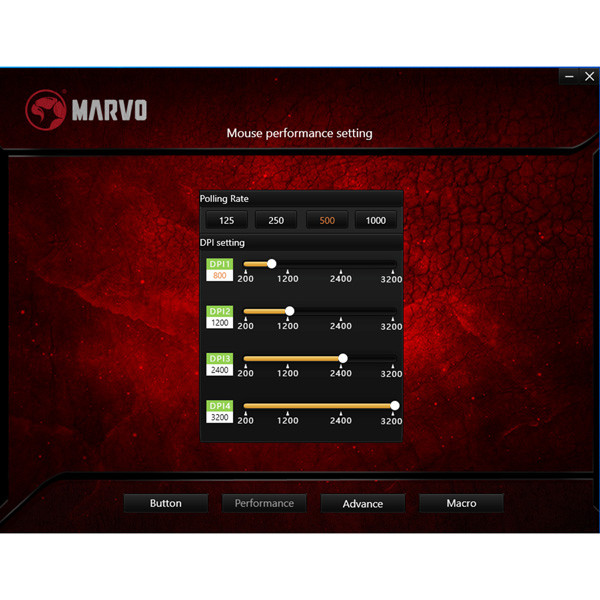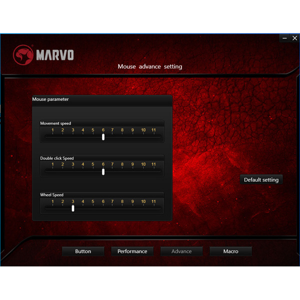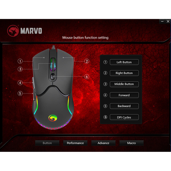 Pro pokročilou konfiguraci myši si můžete stáhnout a nainstalovat specializovaný ovladač z www.marvogaming.eu.