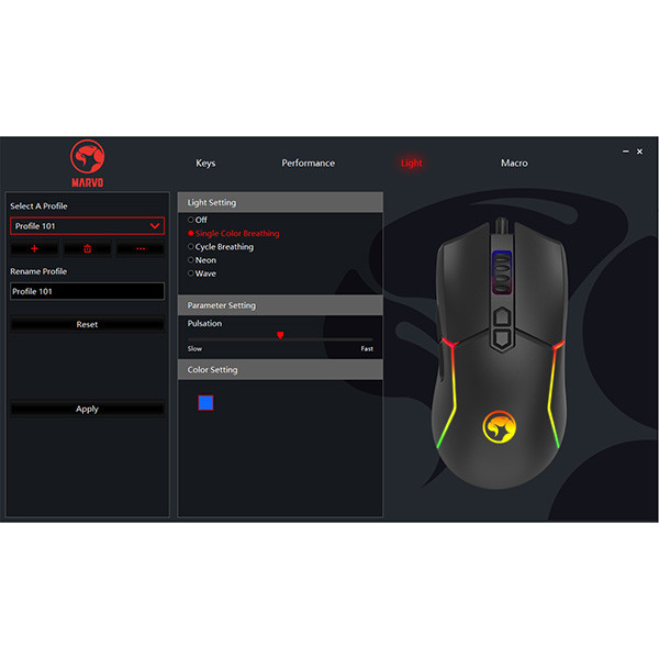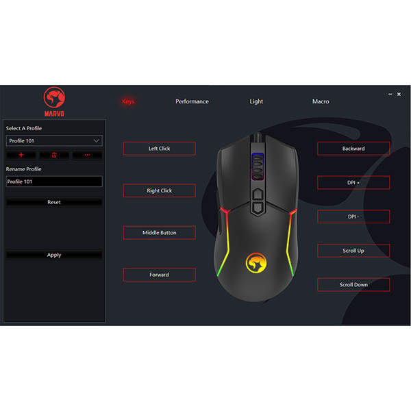 Pokud jste náročnější uživatel a DPI je pro vás číslo jedna, tato myš Marvo je stvořena přímo pro vás. Hráči se dělí do dvou kategorií - první půlka preferuje nižší sensitivitu, toto se týka především FPS her a klasických stříleček. Kde je na prvním místě přesnost. Druhá půlka, která si libuje ve vyšší sensitivitě, uvítá tuto funkci při strategických hrách kde pohyb po mapě musí být dostatečně rychlý a efektivní. Pomocí jediného tlačítka lze měnit toto nastavení DPI a to  800-1600-2400-3200-6400-12000Ergo design se hodí na všechny typy úchopu a ani po hodinách hraní nepocitíte únavuRGB podsvícení je zde pro temné noční pařby, kdy si můžete nastavit několik stylů, barev a efektů podle nálady