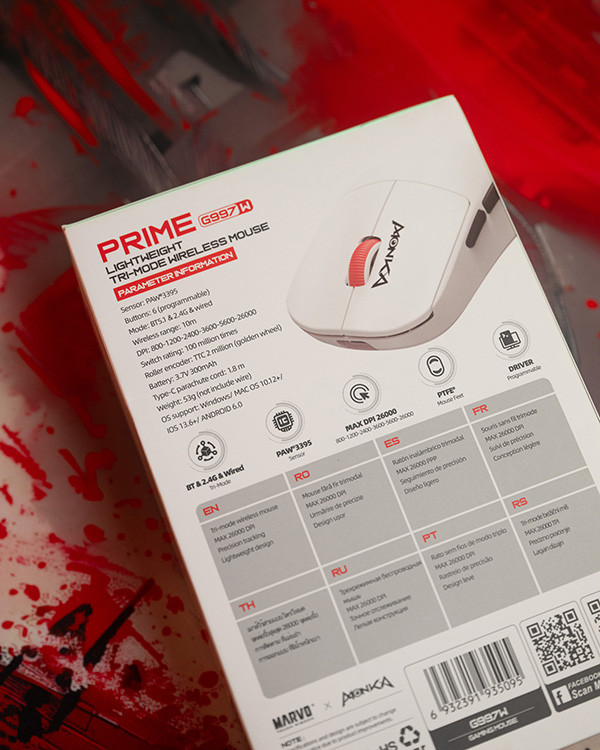 Myš MONKA Prime není jen o výkonu – je i o výdrži. Vybavena spínači Kailh s životností až 100 milionů kliknutí vydrží i ty nejintenzivnější herní maratony. Precizní TTC enkodér navíc zajišťuje hladké a přesné scrollování po celou dobu životnosti zařízení. Celkové zpracování myši je robustní, ale přitom stále velmi lehké, což podtrhuje její výjimečné vlastnosti. MONKA Prime je zkrátka myš, která obstojí i při každodenním intenzivním nasazení. Můžete se na ni spolehnout ve všech situacích.