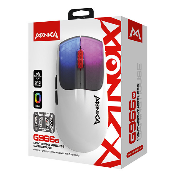 Zapomeňte na nudné podsvícení po obvodu myši. Monka Vero G966W se odlišuje inovativním