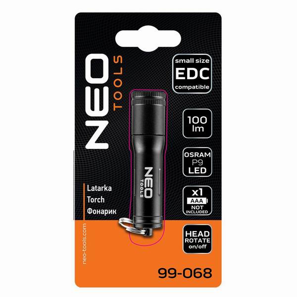 Bateriová svítilna Mini Osram LED NEO (ref. 99-068) je malá a lehká svítilna vybavená LED diodou Osram P9 se světelným tokem 100 lumenů a dosahem 35 metrů. Je napájen 1 AAA baterií (není součástí balení). Tělo přístroje je vodotěsné a splňuje standard IPX4 (ochrana proti stříkající vodě z libovolného směru).