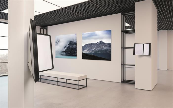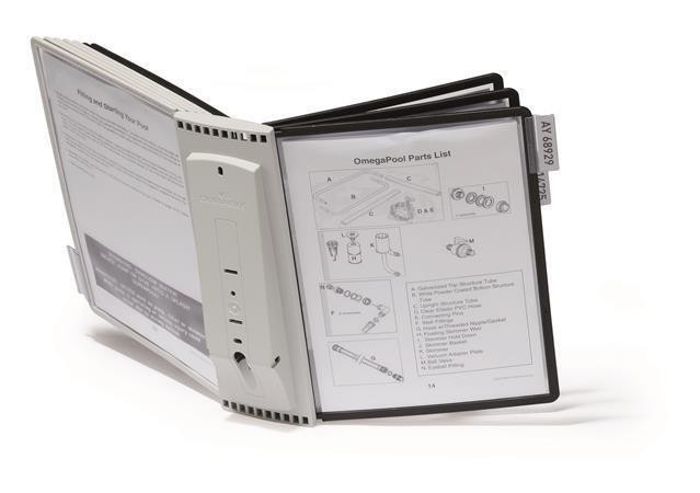 Nástěnný držák pro montáž na stěnu s 10 displejovými panely SHERPA. Polypropylenové panely s barevným profilovým rámem a nízko reflexní fólií vhodné pro skenery. Praktický otočný mechanismus pro jednoduchou výměnu panelů. Ideální pro dílny, výstavní a prodejní prostory.