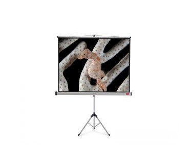Mobilní projekční plátno vhodné pro digitální a zpětné projektory. Velmi stabilní základ na třech nohách, formát 4:3, matně bílé s černým orámováním.