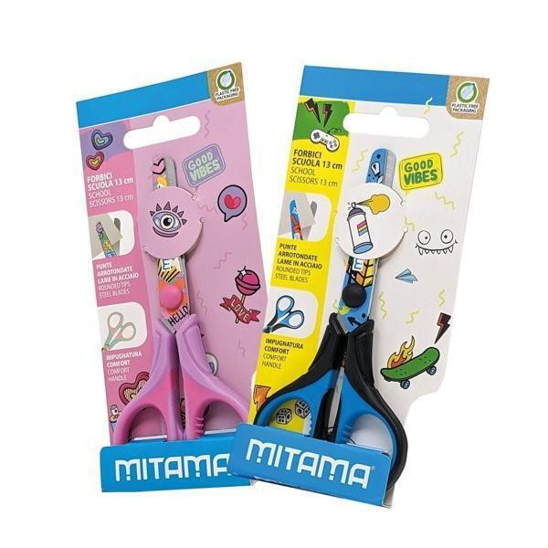 Nůžky "GOOD VIBES", modrá/černá, dětské, 13 cm, MITAMA 61286-90165