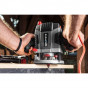 GRAPHITE frézka s výkonným 1300W motorem, určená pro frézování otvorů, drážek, hran a profilů do všech druhů dřeva a materiálů na bázi dřeva, ale i do plastů a hliníku. Zařízení má funkci regulace rychlosti a hloubky frézování. Rozsah volnoběžných otáček je od 11 000 do 28 000 min-1. Frézka má aretaci vřetena a blok hloubky frézování. Hloubku frézování lze nastavit pomocí tří nástrojů: 8stupňový koncový doraz, omezovač hloubky s plynulým nastavením (rozsah 0-55 mm) a knoflík pro přesné nastavení hloubky (přesnost 0,1 mm). Zařízení je vybaveno stabilní hliníkovou základnou s plastovým krytem, ??zajišťující snadnou manipulaci s přístrojem na všech druzích povrchů. Vodítka motoru jsou zapuštěna v hliníkovém těle s objímkami podrobenými specializované povrchové úpravě, díky které se zařízení vyznačuje zvýšenou přesností při penetraci. Ergonomické rukojeti routeru jsou potaženy protiskluzovým materiálem, takže ovládání zařízení je pohodlné a bezpečné. Protiprachový kryt a adaptér pro odsávání prachu jsou vyrobeny z průhledného polykarbonátu. Router je vybaven velkým knoflíkem pro regulaci rychlosti, umístěným v dosahu pravého palce obsluhy. Na levé rukojeti frézky je umístěna ergonomická páka bloku vedení těla, která umožňuje její ovládání, aniž byste museli sundávat ruku.
