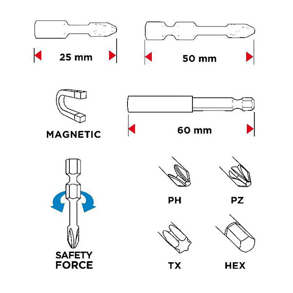 Sada bitů, 56H612, 22 bitů + magnetický nástavec, v kompaktním boxu, Graphite