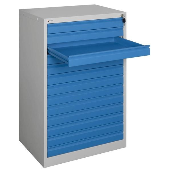 • Barva korpusu: světle šedá RAL 7035, barva zásuvek: modrá RAL 5015. Barevnost na obrázku je ilustrativní