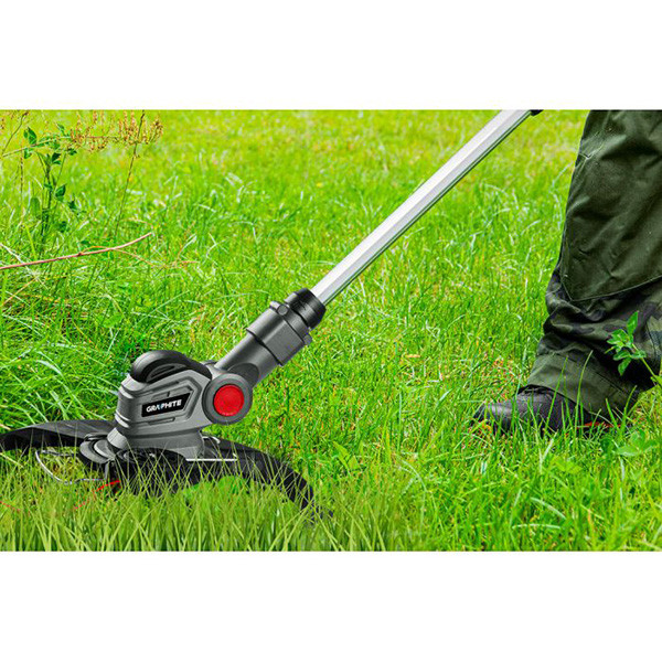 Šikovný zastřihovač patřící do bateriové řady Energy+ od značky GRAPHITE. Kompatibilní s lithium-iontovými bateriemi 18 V. Doporučené baterie jsou baterie s kapacitou 2 a 4 Ah. Jejich práce se odhaduje na 34, respektive 62 minut. Pracovní záběr zastřihovače je 280 mm, což umožňuje práci na těžko dostupných místech a práci na okrajích trávníků. Model se vyznačuje mnoha vymoženostmi, jejichž účelem je zpříjemnit používání nástroje. Zastřihovač dosahuje rychlosti 9 000 otáček za minutu. Teleskopická rukojeť se vysune od 1 do 1,4 m, což umožňuje personalizaci a individuální přizpůsobení výšce uživatele. Ergonomická rukojeť a systém automatického podávání vlasce urychlují práci mnohem rychleji než v případě jiných modelů. Vyžínač GRAPHITE je vybaven 3 m dlouhým vlascem o průměru 1,6 mm.