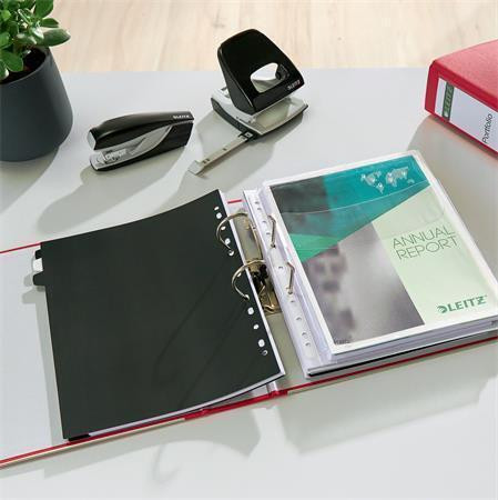 Celoplastový pořadač vybavený patentovanou pákovou mechanikou Leitz 180°, která umožňuje otáčení páky o 180° a tím poskytuje více prostoru při zakládání, možnost zakládat na obě strany mechaniky a celkově šetří čas při práci s pořadačem. Vhodný i pro dokumenty vložené v závěsných kapsách a rejstříky či rozlišovače formátu A4 MAXI.