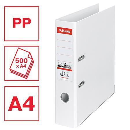 Pákový pořadač "Standard", ochranné spodní kování, Vivida bílá, 75 mm, A4, PP, ESSELTE