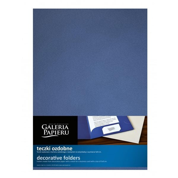 • Papírové desky s chlopněmi a tenkým hřbetem, vyrobené z metalizovaného modrého dekorativního kartonu, ideální pro certifikáty, diplomy, či obchodní nabídky
