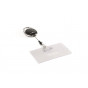 Stylový oválný držák s karabinou a patkovým zapínáním. Vhodný pro přichycení jmenovek, průkazů, klíčů, apod.