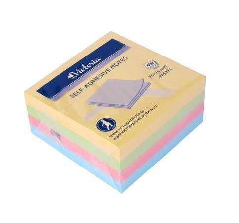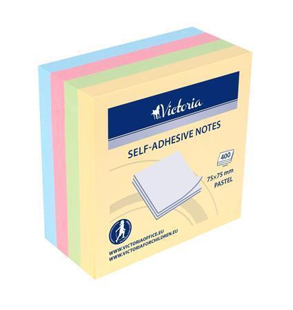 Samolepicí bloček, mix pastelových barev, 75 x 75 mm, 4x 100 listů, VICTORIA