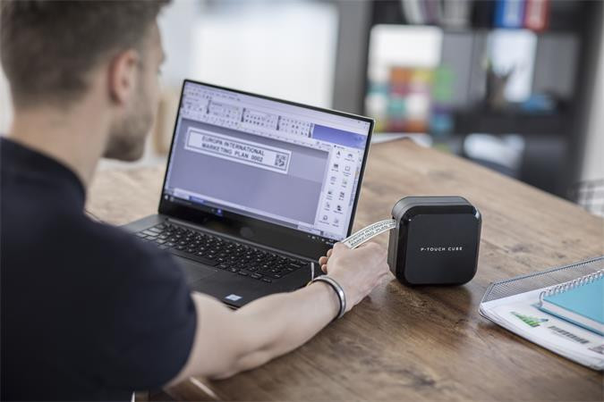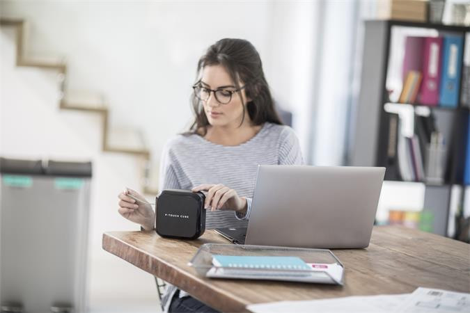 Malá tiskárna štítků bez klávesnice. Možnost tisku z celého bytu pomocí telefonu přes Bluetooth připojení. K počítači jej však můžete připojit i pomocí USB kabelu.