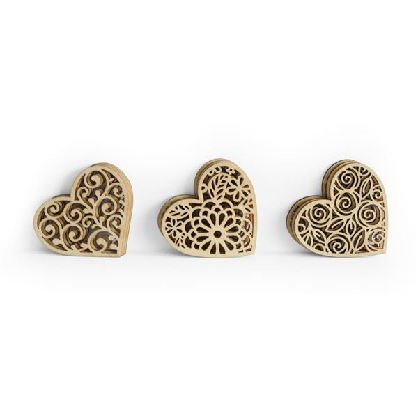 • Dekorační dřevěné výřezy ve tvaru srdce