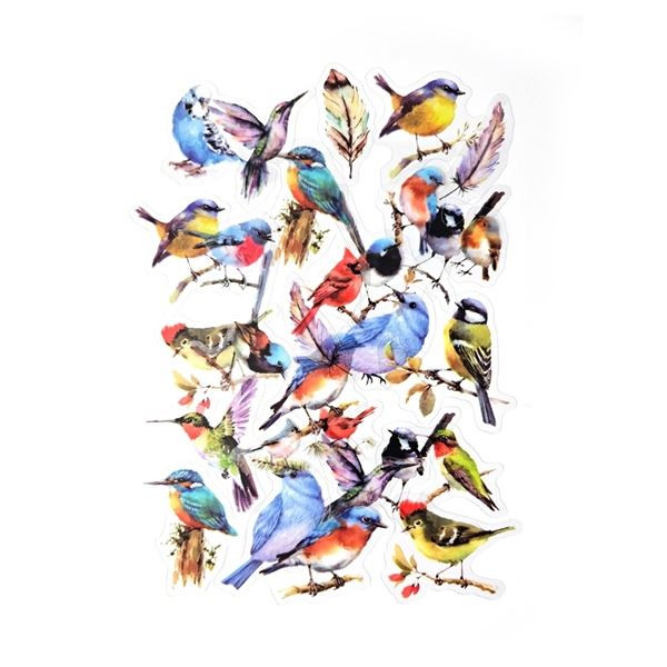 • Průhledné fóliové PET samolepky s motivem ptáčků, vhodné jako dekorace pro scrapbooking a cardmaking, dozdobení alb, zápisníků, diářů apod.