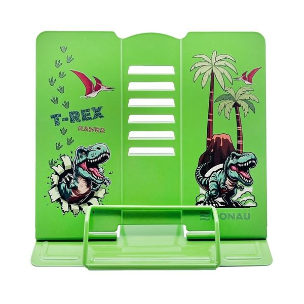 Popis - Stojánek na čtení Donau z lakovaného kovu s motivem T-Rex