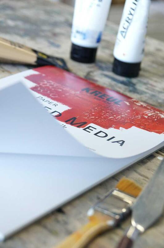KREUL Paper Mixed Media je vhodný pro všechny techniky Mixed Media Fine Art, ať už mokré nebo suché. Kvalitní umělecký papír je čtyřstranně slepený, takže po navlhčení zůstává dokonale rovný a nevlní se. Povrch je hladký, saténový a velmi pevný, což umožňuje intenzivní nanášení barev, vysokou vlhkost a práci s více technikami. Papír je vyroben ze směsi 25 % bavlny a lignin-free celulózy. Tento kvalitní papír je doporučen zejména studentům a začátečníkům.