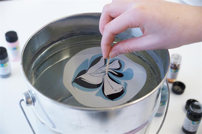 při mramorování postupujte rychleji, aby se zabránilo vzniku barevného filmu