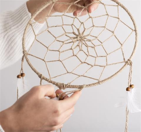 Bílá kovová obruč pro výrobu lapačů snů, háčkování nebo jiných dekorací.