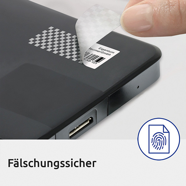 Tyto etikety s ochranou proti manipulaci ocenítě především při označování hodnotných předmětů, kancelářského nábytku nebo elektroniky. Pokud se etikety někdo snaží odstranit, zanechají po sobě viditelný šachovnicový vzor. Není možné je znovu nalepit, takže jakákoliv manipulace je ihned zřejmá. Etikety jsou navíc odolné vůči mastnotě, špíně, kapkám vody, natržení. Pro potisknutí etiket snadným a rychlým způsobem využijte náš bezplatný software pro návrh a tisk etiket Avery Design & Print nebo si zdarma stáhněte šablony v Microsoft® Office.