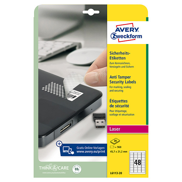 Avery Zweckform etikety 45.7mm x 21.2mm, A4, matné, bílé, 960 etiket, s ochranou proti manipulaci, baleno po 20 ks, L6113-20, pro