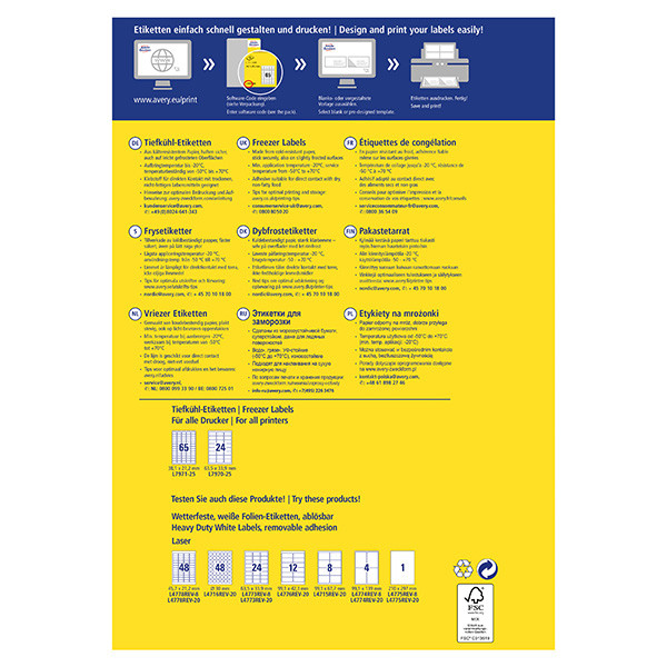 Avery Zweckform etikety 63.5mm x 33.9mm, A4, bílé, 24 etiket, do mrazících boxů, baleno po 25 ks, L7970-25, pro laserové a inkoust