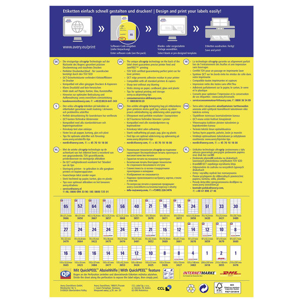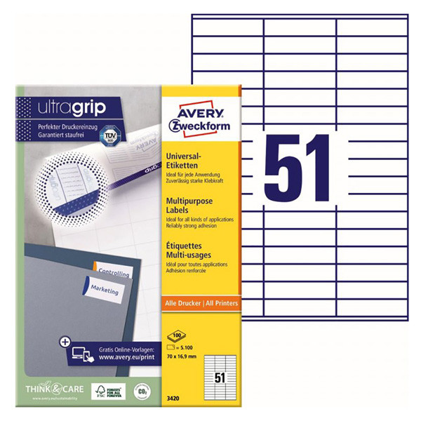 Avery Zweckform etikety 70mm x 16.9mm, A4, bílé, 51 etiket, baleno po 100 ks, 3420, pro laserové a inkoustové tiskárny, kopírky
