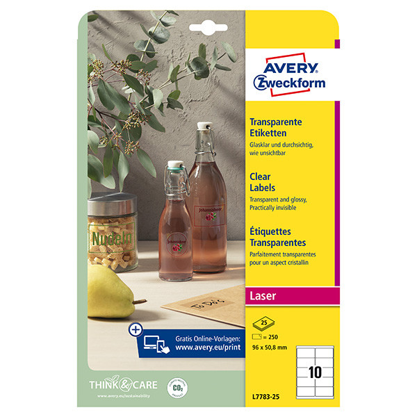 Avery Zweckform etikety 96mm x 50,8mm, A4, bílé, 10 etiket, vysoce lesklé, baleno po 25 ks, L7783-25, pro laserové tiskárny