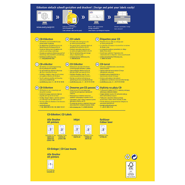 Etikety na CD AVERY-ZWECFORM Classic Size průměr 117 mm. 25 listů v balení na formátu A4. Ideální na archivační CD. Balení obsahuje centrovací pomůcku pro snadné a přesné nalepení na CD nosič.
